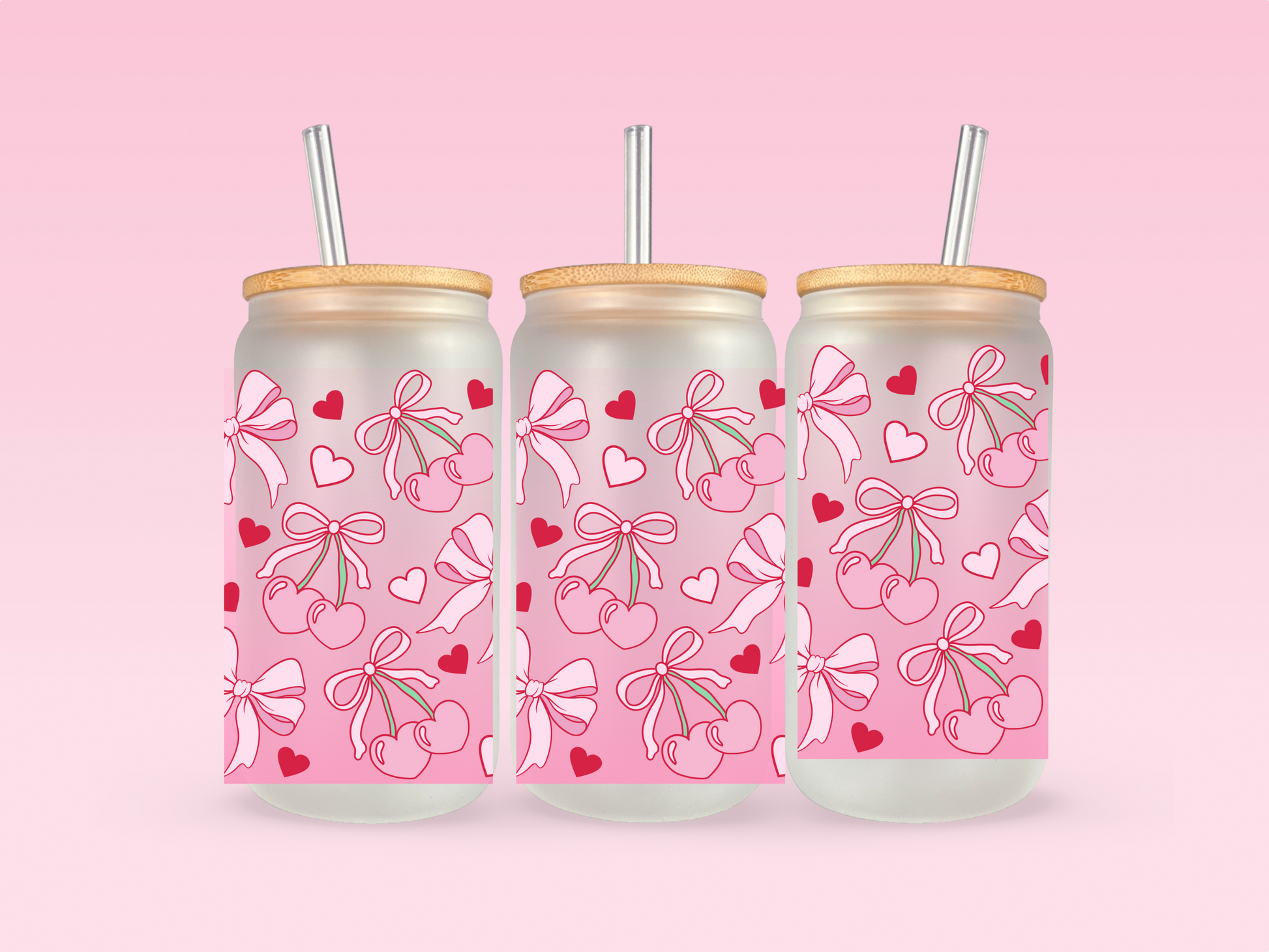 Pink and Red Cherry Bows Frosted 16 oz Cup